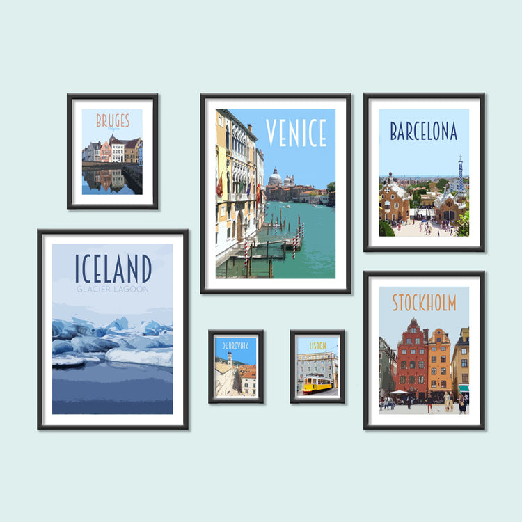 Shop Travel Posters and Postcards from you favourite places in Europe. Create a gallery wall of your favourite summer holidays or pick and mix postcards from your interrail adventures across Europe. Here you will find travel posters of Paris, Rome, Barcelona, Stockholm, Bruges and many more.