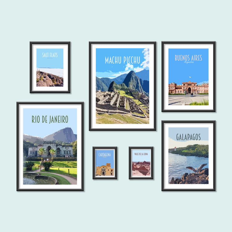 Browse Travel Posters and Postcards of your favourite places in South America. From the mountains of Peru to the Salt Flats of Bolivia to the beaches in Brazil, you can find souvenirs for them all here. This collection includes Machu Picchu, Iguazu Falls and the Galapagos Islands.