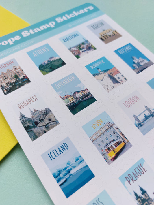 Europe Stamp Sticker Sheet