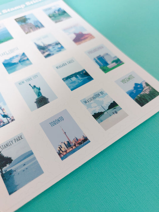 USA and Canada Stamp Sticker Sheet
