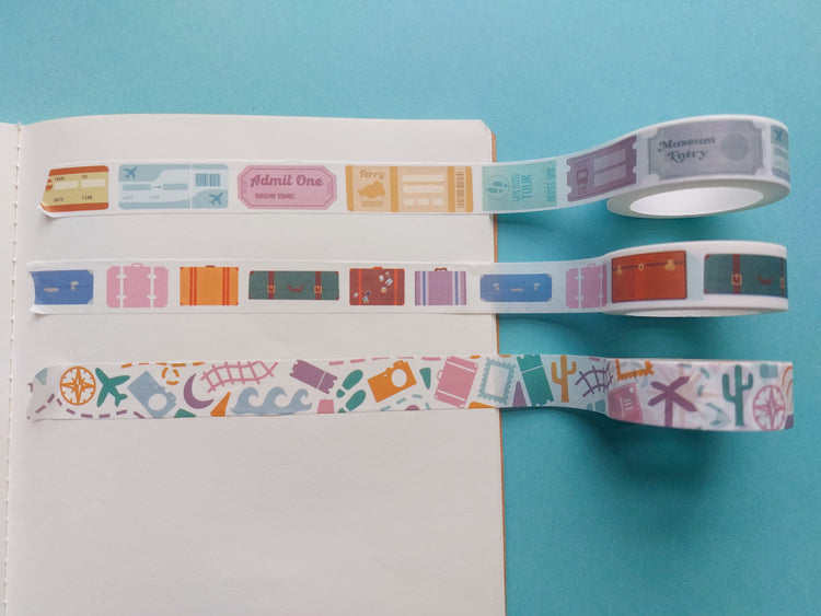 Decorate your travel journal or scrapbook with our collection of travel themed washi tape. All rolls are 10m in length so plenty of tape to keep you going! Washi tape is a thin patterned tape that is sticky but easy to remove without leaving residue.