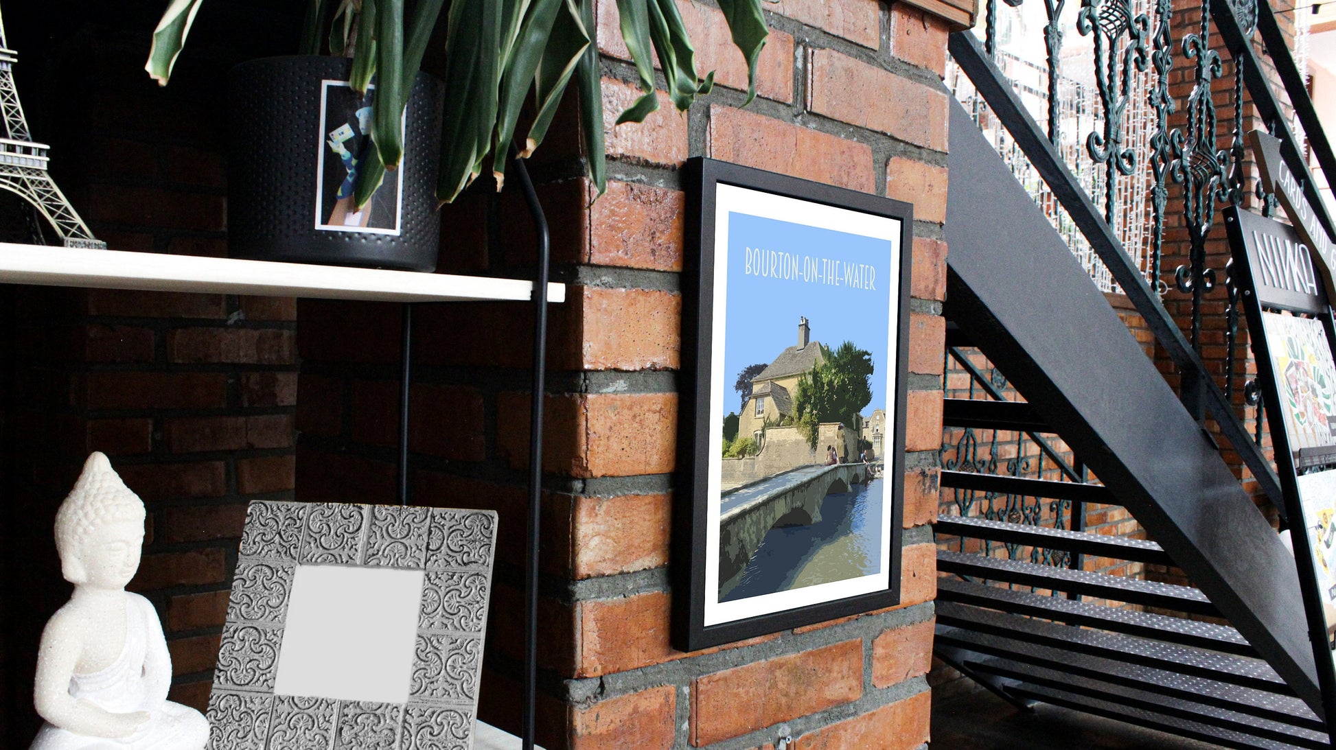 Bring a touch of Britain to your home with this retro-style Bourton-on-the-Water travel poster. A great addition to your homeware, it features stunning artwork of the beautiful Cotswolds countryside in England.