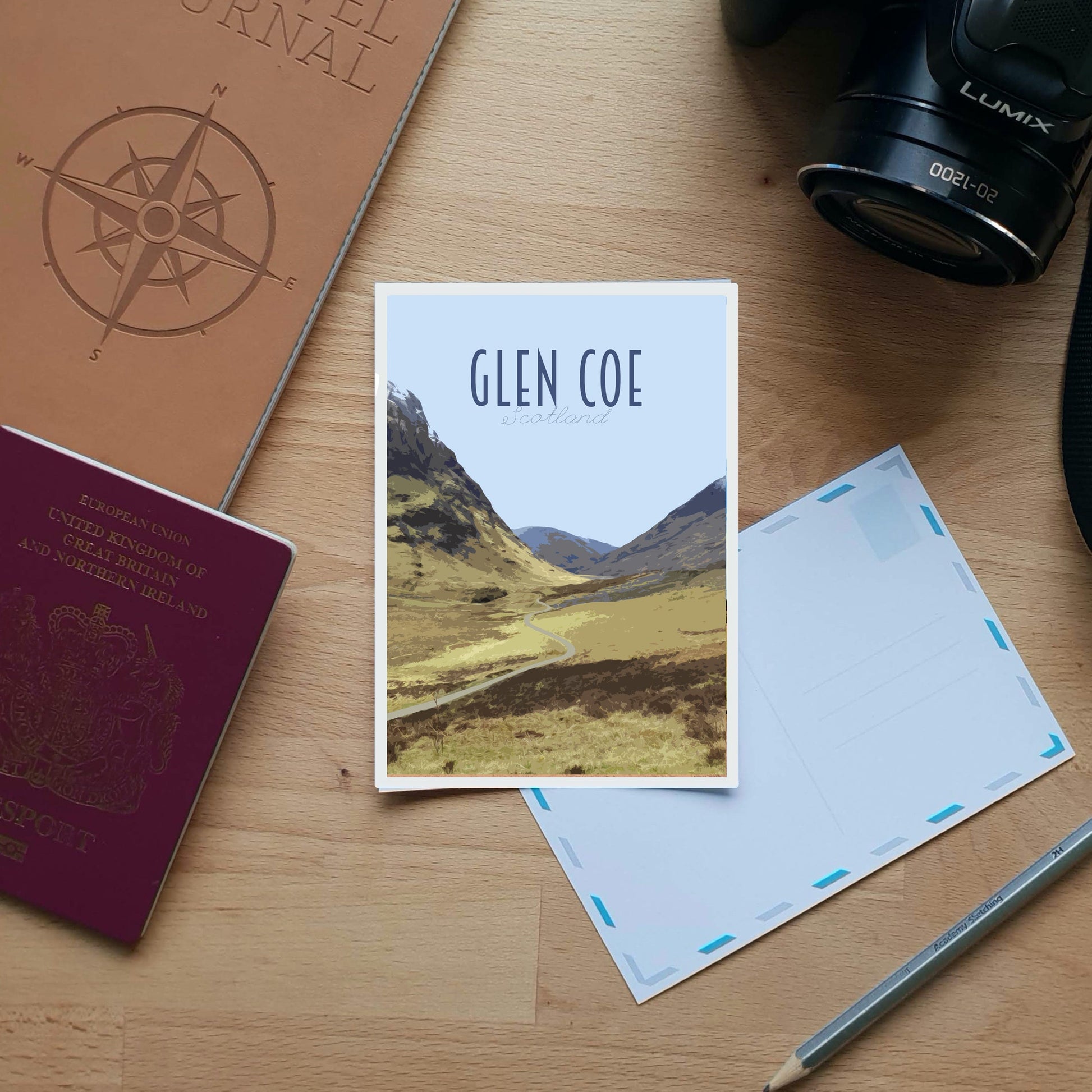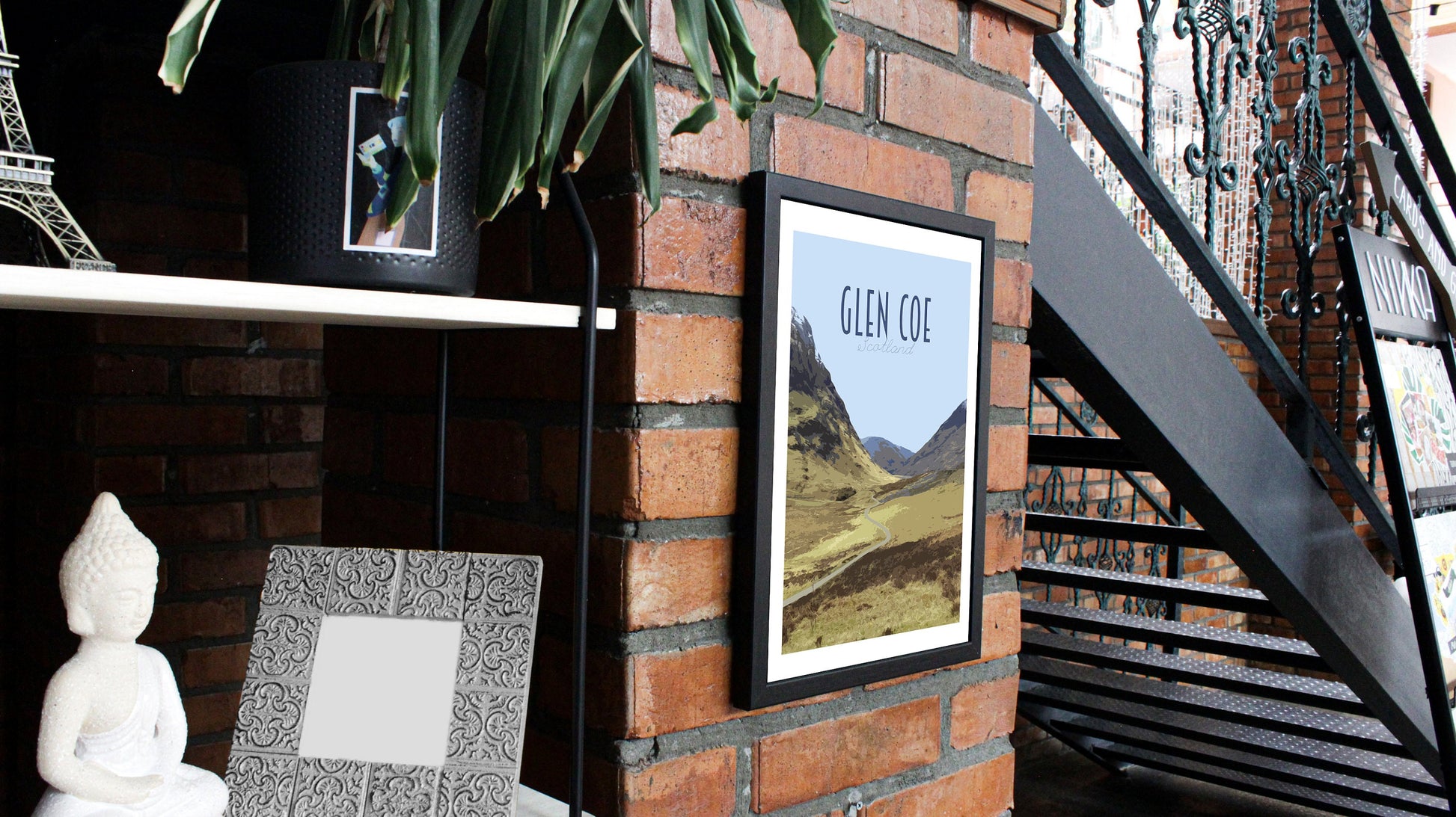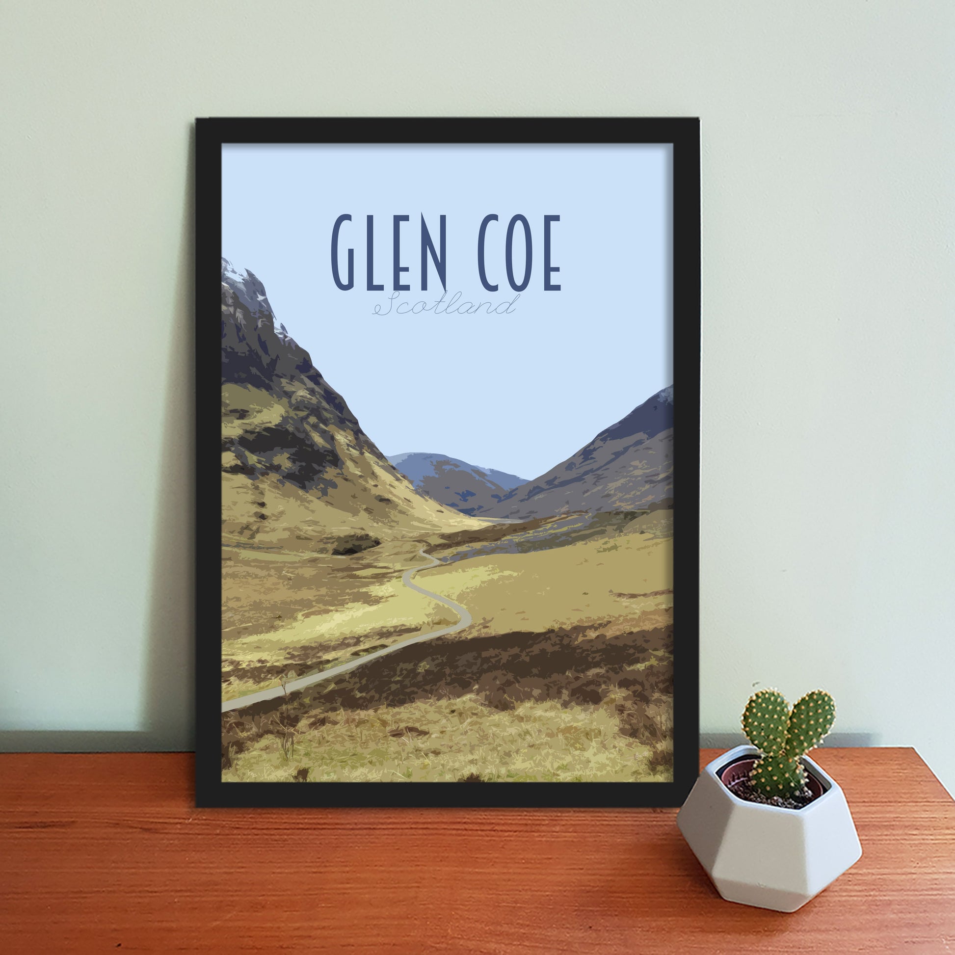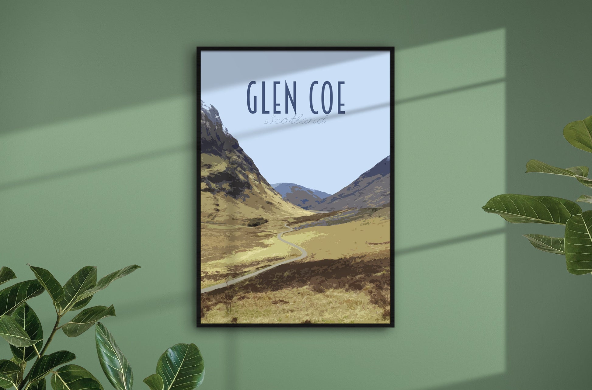 Beautifully capture the beauty of Glen Coe with this vintage-style travel poster. Perfect as a reminder of a past getaway or to bring a little piece of Scotland into your home.