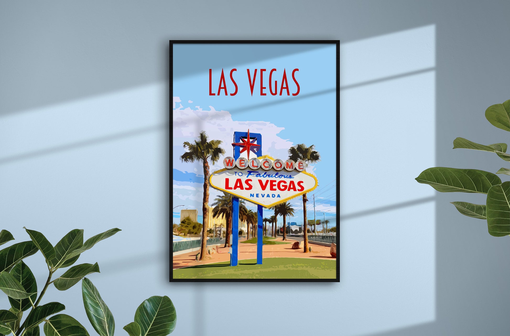 Las Vegas Travel Poster. Retro style travel print of Las Vegas, Nevada, USA.