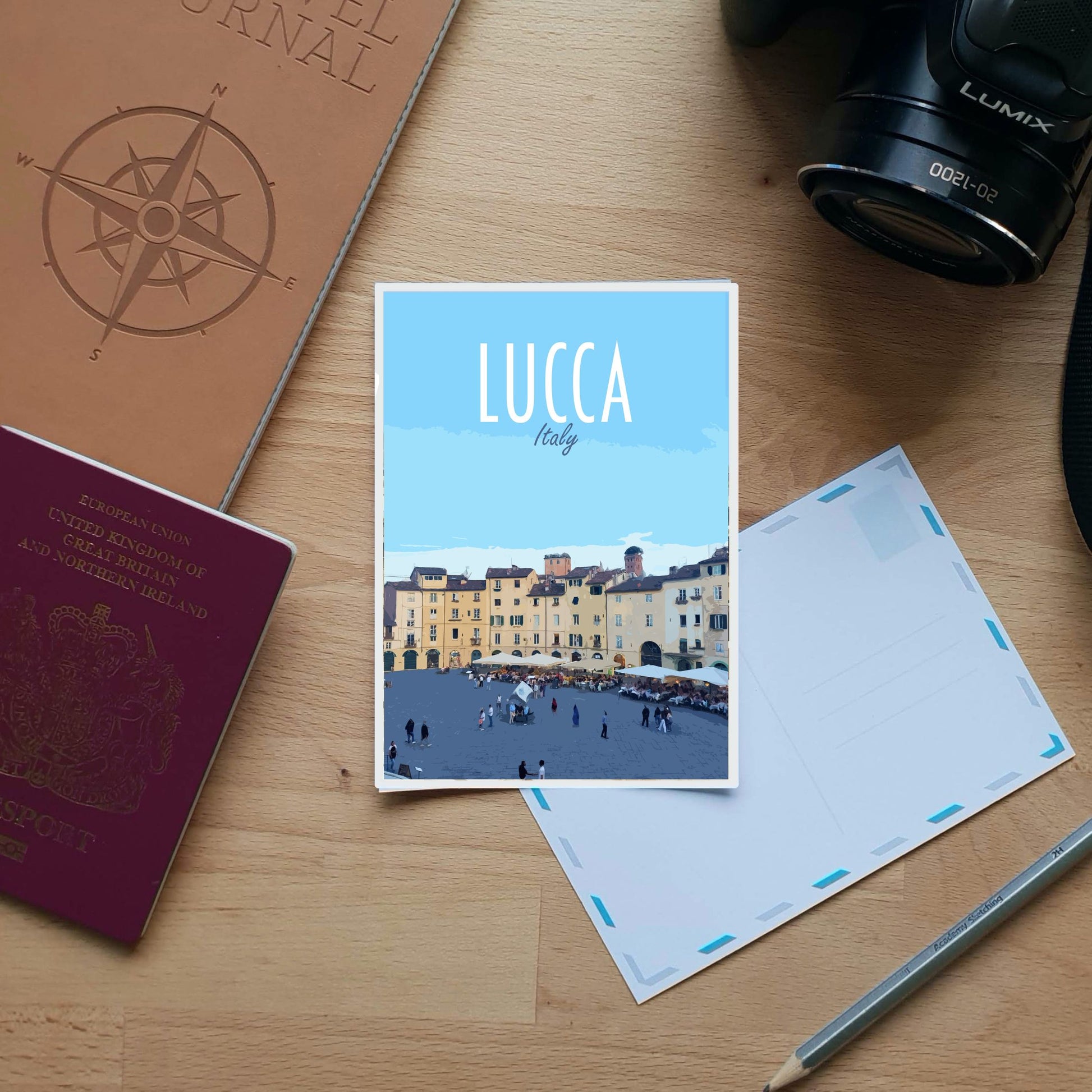 Capture the charm of Tuscany with the Lucca Travel Poster, an inviting tribute to this historic Italian city. Perfect for inspiring your next adventure or adding a touch of wanderlust to any space, this poster highlights Lucca’s timeless beauty.