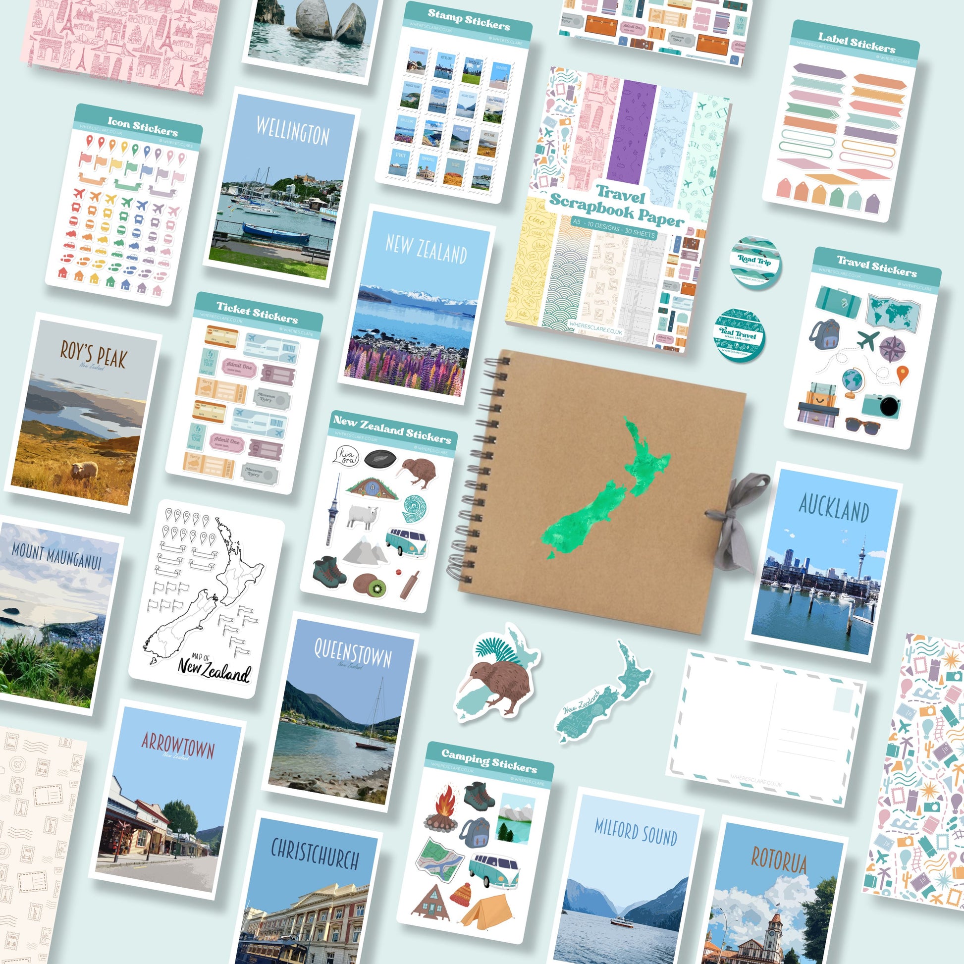 Personalised New Zealand Scrapbook Kit. Choose the colour you would like the New Zealand map silhouette on your book cover.